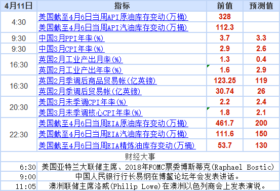 ★4月11日(周三):API&EIA原油库存,中国CPI/PPI、美国CPI、英国工业产出