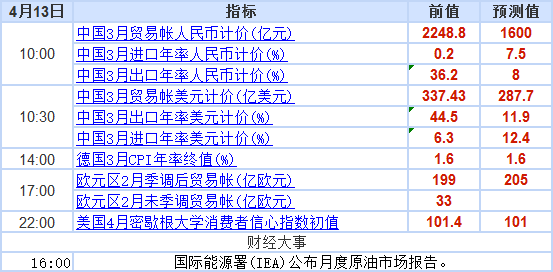 4月9日-13日当周,中美贸易战风波料将持续发展,其引发的避险情绪的升温或消退,都将对市场产生重大影响;同时我们将迎来美国CPI/PPI、中国CPI/PPI,API/EIA原油库存等重磅数据,以及美国预算和经济前景报告、美联储会议纪要、OPEC月报、IEA月报等重要报告;外汇、黄金、原油市场走势料将波澜壮阔,下面汇通网元易为您一一分解。