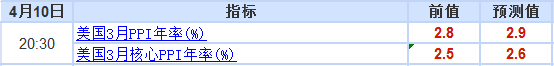 目前市场预期美国3月PPI年率增幅将上升至2.9%,好于前值,前值为2.8%。