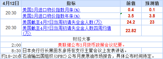 ★4月12日(周四):美联储会议纪要、OPEC月报