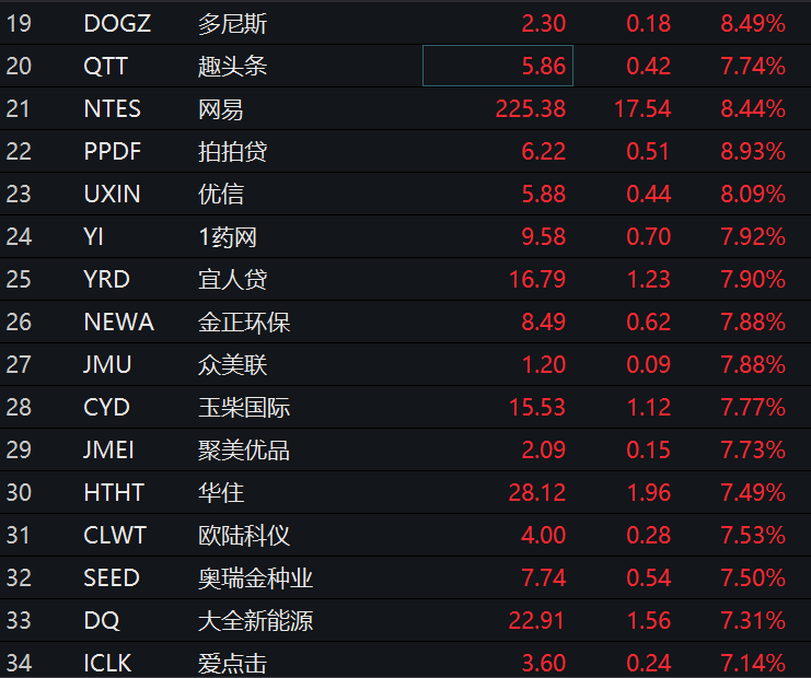 美国中概股也大有表现: