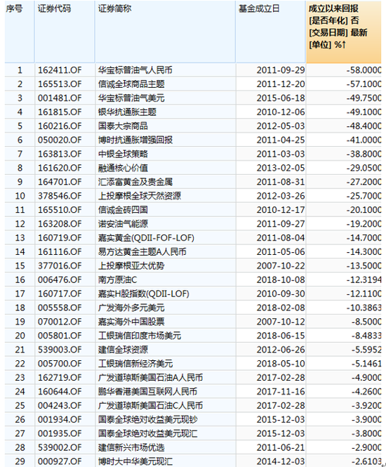 全市场中,成立以来亏损较多的QDII基金。