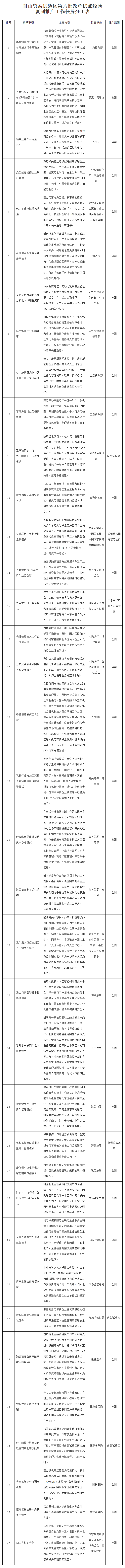 【附件:自由贸易试验区第六批改革试点经验复制推广工作任务分工表】